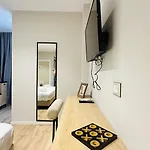 Gasten die verblijven in Blloku Luxurious Studio kunnen genieten van het gemak van een haardroger en slippers in de badkamer. Je vindt er ook een apart toilet en een douche.
